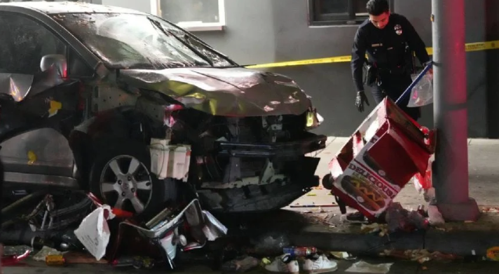 AP.- Un vehículo embistió a una multitud de personas que esperaban para entrar a un club nocturno a lo largo de un concurrido bulevar en Los Ángeles el sábado por la madrugada, hiriendo a 30 personas.