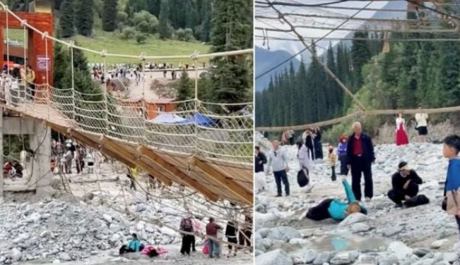 De acuerdo con el reporte, el accidente ocurrió alrededor de las 18:18 horas (hora local) en el distrito de Zhaosu, en el norte de Xinjiang, cuando uno de los cables colgantes del puente se rompió y lo inclinó, provocando la caída de 29 personas al suelo.