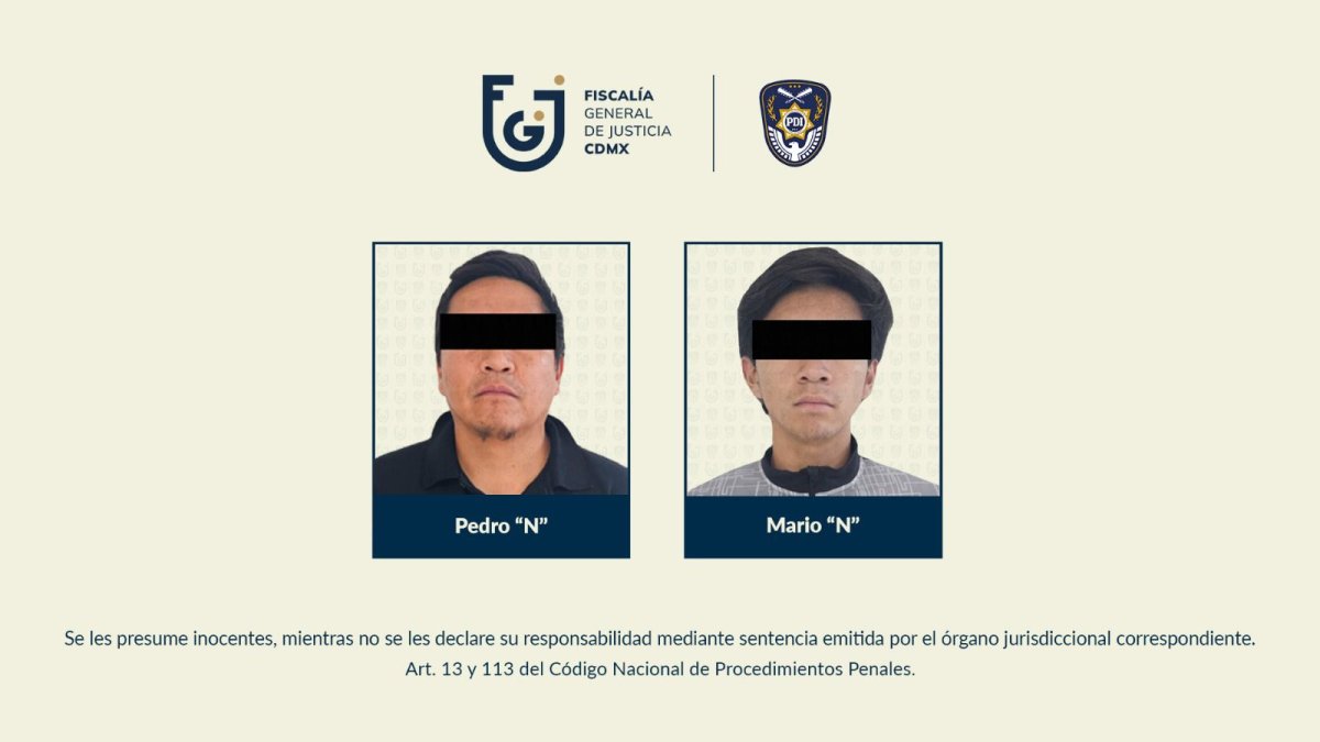 Mario “N” fue detenido en flagrancia en la colonia Jardín Balbuena, alcaldía de Venustiano Carranza, mientras que Pedro “N” fue localizado en la colonia Ejército Constitucionalista, en Iztapalapa.