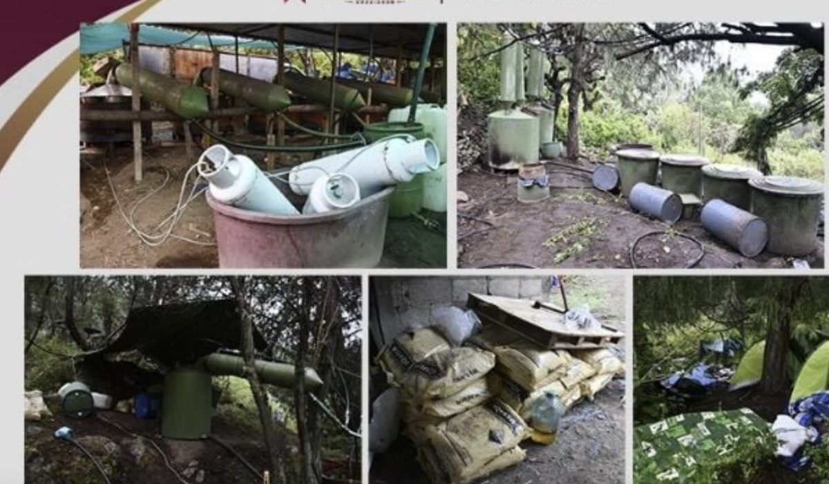 De acuerdo con el informe oficial, en el operativo también incautaron siete quemadores de gas, 187 tambos vacíos con capacidad de 200 y 500 litros, un contenedor tipo cisterna de 5 mil litros que contenía agua, tres secadoras metálicas, cinco ventiladores, ocho ollas de peltre, ocho máscaras para gas y 15 tinas vacías con capacidad de mil litros.