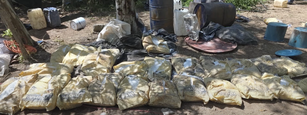 Fuerzas federales incautaron unas 21 toneladas de metanfetamina en dos laboratorios clandestinos del grupo narcotraficante "Los Mayos" en el municipio de Carricitos, en Durango.