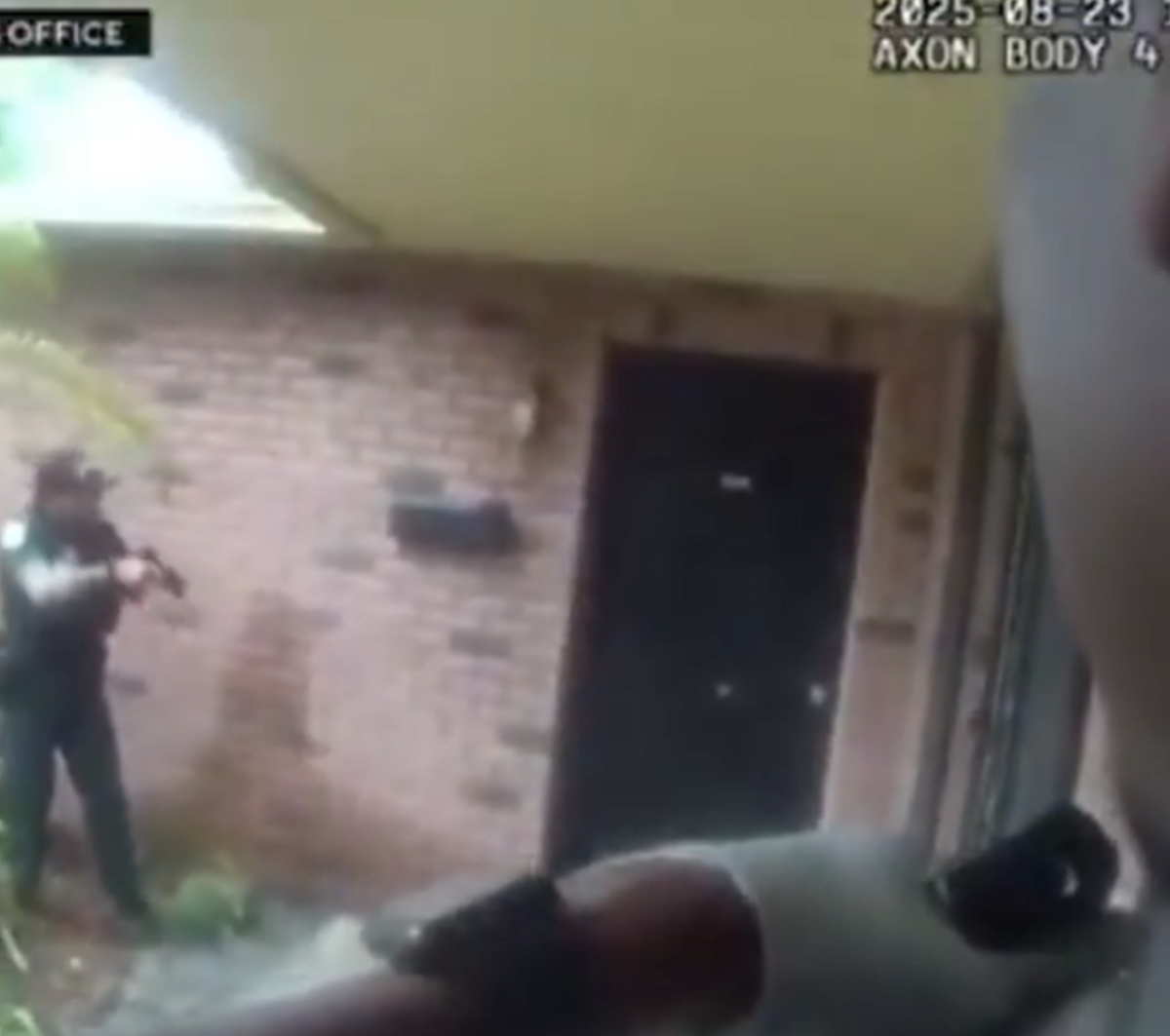 En la grabación se observa cómo dos agentes acuden a una vivienda tras recibir un reporte de intento de allanamiento de morada. Tras avisar que son las fuerzas del orden, el dueño empieza a abrir la puerta y, de repente, uno de los policías dispara hacia la vivienda.