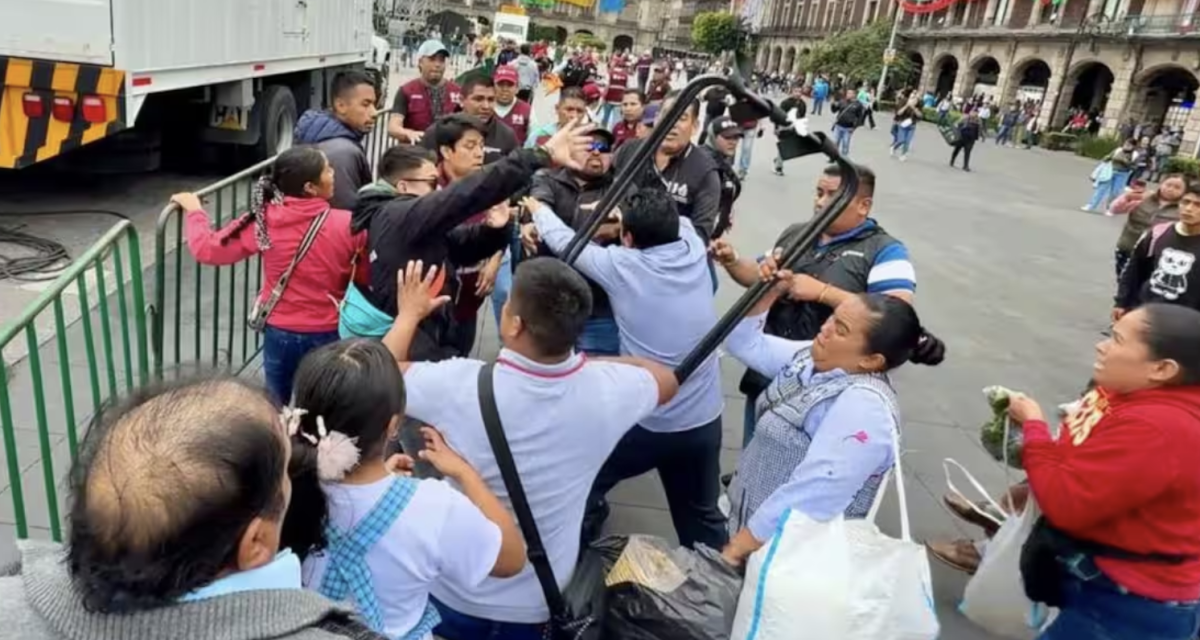 La tarde de este lunes 15 de septiembre de 2025, comerciantes ambulantes y trabajadores del Gobierno de la Ciudad de México se enfrentaron en la plancha del Zócalo, a tan solo unas horas del primer Grito de Independencia de Claudia Sheinbaum como presidenta.