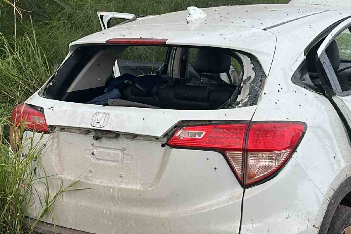 La segunda unidad, una Tahoe gris también blindada, presentaba impactos visibles y estaba empotrada fuera del camino. Ambas unidades fueron aseguradas por personal militar, que estableció un perímetro de seguridad en el área.