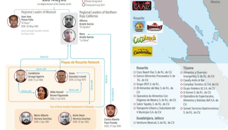 “Una de las ciudades controladas por René Arzate es Rosarito, una comunidad costera aproximadamente a 15 millas al sur de la frontera de Estados Unidos y México. Dada su proximidad a la frontera de Estados Unidos, Rosarito y las áreas circundantes son parte de un corredor crítico para el contrabando de drogas del Cártel de Sinaloa hacia los Estados Unidos”, puntualizaron.