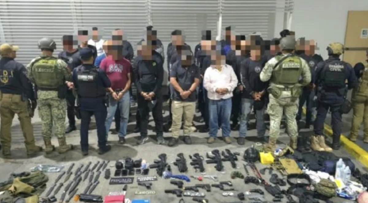 Durante una inspección al lugar, las fuerzas de seguridad corroboraron la presencia de los 38 hombres "realizando entrenamientos tácticos operativos" en portación de un arma corta, 19 réplicas de armas de fuego, así como cuchillos, navajas, equipo táctico y de comunicación y un vehículo, señaló el escrito. Las autoridades no informaron la identidad de los detenidos y solo precisaron que en el grupo hay un estadounidense.