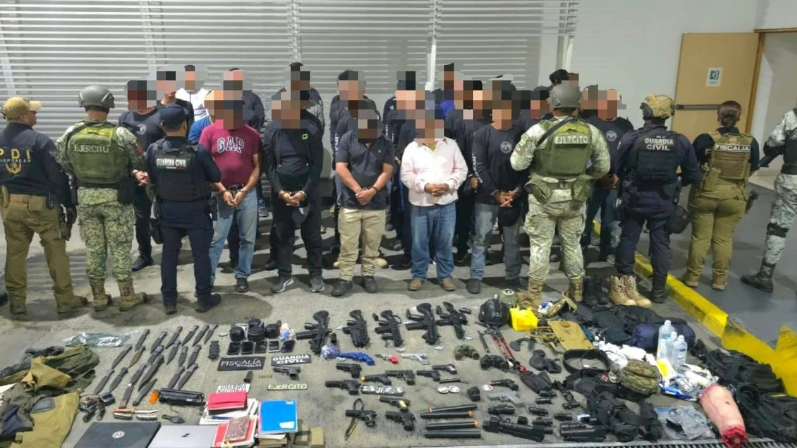 A través de sus redes sociales, en su momento la Secretaría de Seguridad Pública del estado (SSP) informó que, en un operativo interinstitucional agentes de la Guardia Civil, del Ejército Mexicano, de la Guardia Nacional, la Fiscalía General del Estado de Michoacán (FGE) y la Policía Municipal detuvieron a 38 personas del sexo masculino en portación de un arma corta y 19 réplicas de armas de fuego, así como armas blancas y equipo táctico, entre otros.