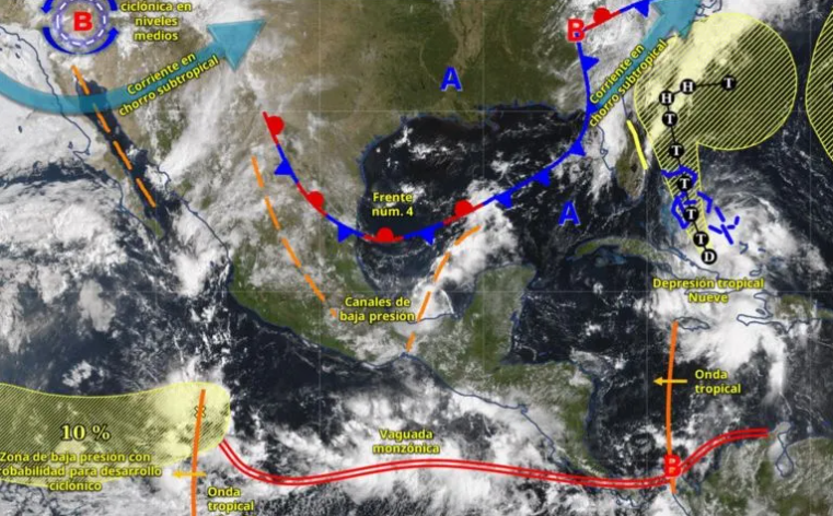 Para las próximas 24 horas, se prevén precipitaciones en el noroeste, occidente, centro, sur y sureste del territorio, impulsadas por la circulación ciclónica en niveles medios y altos, el frente frío número 4 y diversos canales de baja presión. Estados como Sonora, Chihuahua, Sinaloa, Durango, Veracruz, Puebla, Oaxaca, Chiapas y la península de Yucatán registrarán los mayores acumulados de lluvia.