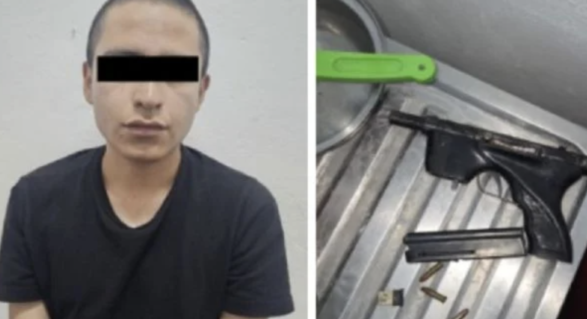 La FGEP confirmó que a este joven, quien fue detenido por un delito en flagrancia, se le decomisó un arma de fuego, así como dispositivos electrónicos y evidencias gráficas que hacen presumir que sí planeaba consumar un atentado.