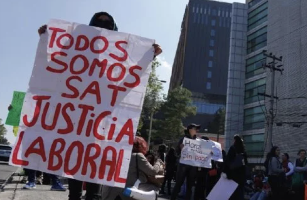 CIUDAD DE MÉXICO (apro).- Por segundo día consecutivo, trabajadores del Servicio de Administración Tributaria (SAT) mantuvieron el paro nacional bajo la consigna de “brazos caídos”, con un bloqueo frente a oficinas del organismo, ubicadas en la alcaldía Iztacalco, en demanda de mejoras salariales, equidad laboral y condiciones dignas de trabajo.