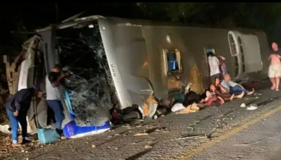 La policía indicó que el conductor perdió el control del autobús, cruzó al carril contrario y chocó contra rocas al borde de la carretera. Luego regresó al carril correcto, pero se impactó contra un terraplén de arena, lo que provocó que el vehículo volcara.