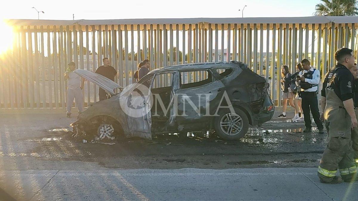 En el lugar, una camioneta Hyundai Santa Fe, proveniente de El Paso, fue consumida por las llamas.