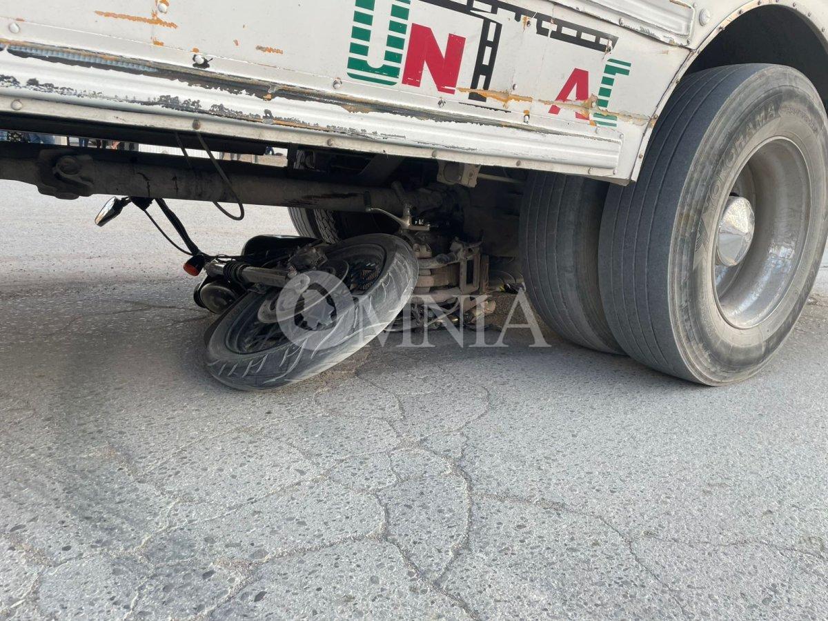 Vecinos mencionaron que el camión de transporte de personal le cortó el paso al motociclista y le pasó las llantas por encima.