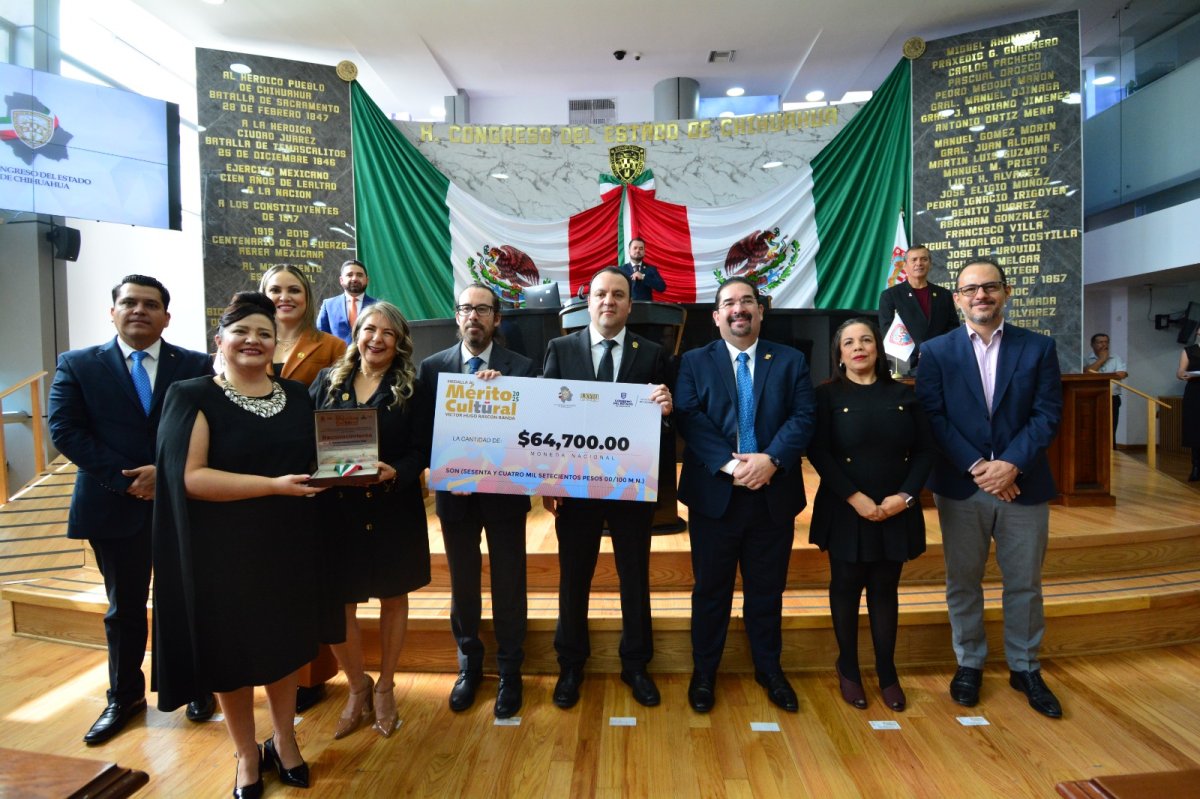 En Sesión Solemne del Congreso de Chihuahua encabezada por los representantes de los Tres Poderes del Estado, fue entregada la Medalla al Mérito Cultural Víctor Hugo Rascón Banda a la Mtra. Reneé Ivonee Acosta Díaz, destacada creadora en la categoría de Literatura.