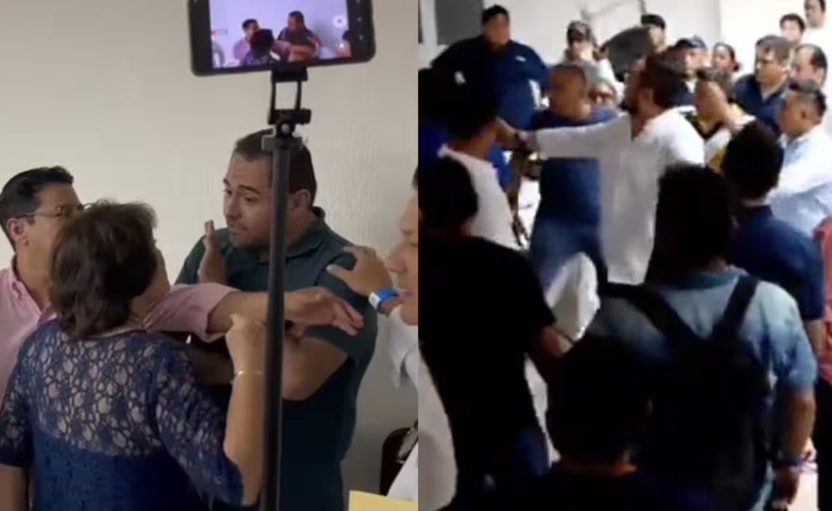 La elección del Consejo Político Estatal del PAN en Campeche terminó en una batalla campal, con militantes enfrentándose a golpes y “sillazos” en pleno evento.