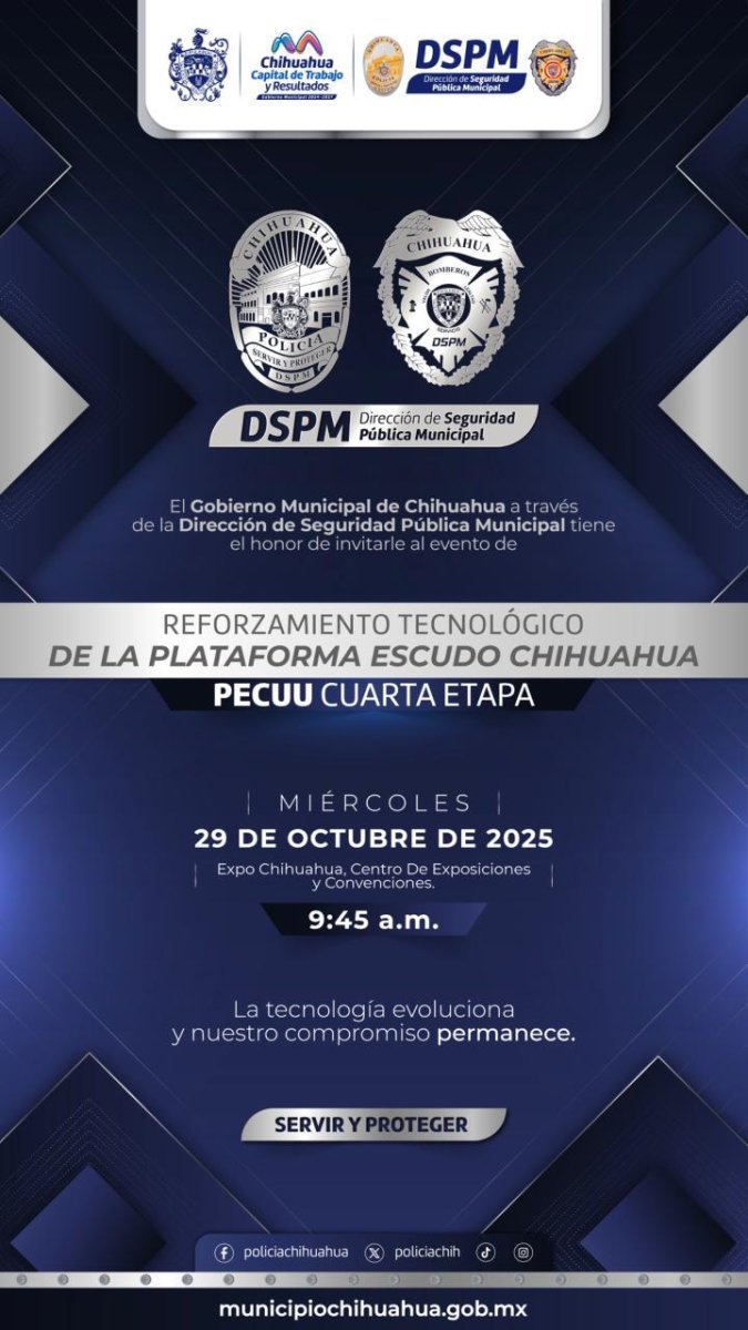 Mientras que Cruz Pérez Cuéllar y el Secretario de Seguridad Pública Estatal Gilberto Loya, andan discutiendo el tema de Centinela y expresando que se está politizando el tema, en Chihuahua el Director de la Municipal Julio César Salas y el alcalde Marco Bonilla, encabezarán el evento de reforzamiento de la Cuarta Etapa de la Plataforma Escudo Chihuahua (PECUU).