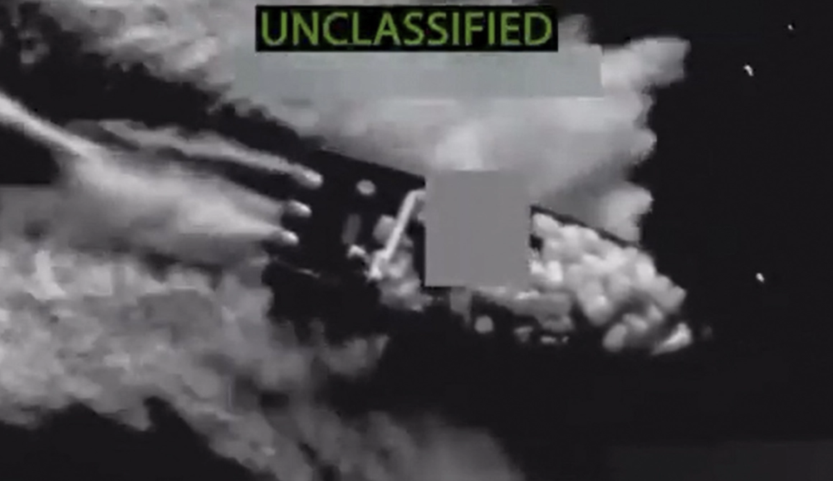 Al igual que en imágenes anteriores difundidas por el gobierno estadounidense, las áreas de la embarcación están difuminadas, lo que hace imposible verificar cuántas personas iban a bordo.