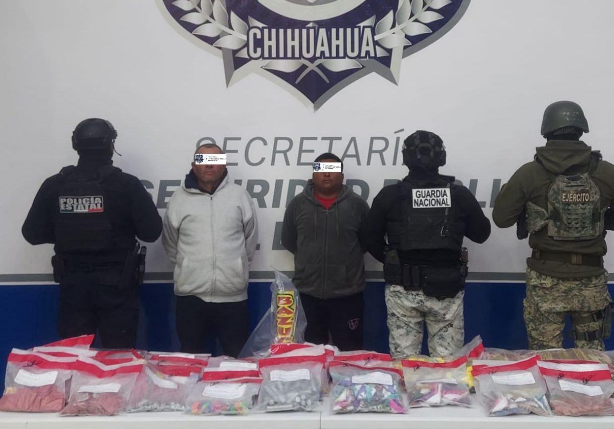 Durante la tarde del pasado lunes, la Secretaría de Seguridad Pública del Estado (SSPE) llevó a cabo el arresto de dos sujetos en Ciudad Juárez, identificados como Alfonso O. Z. y Francisco M. H., quienes portaban más de 2,500 piezas de pirotecnia, equivalentes a aproximadamente 19 kilogramos de estos artículos.