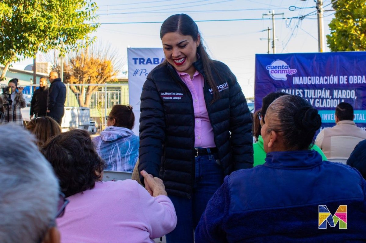 La alcaldesa de Meoqui, Arq. Miriam Soto, José Luis Cisneros, Director Ejecutivo de la JMAS y vecinos del Fraccionamiento Jardines del Santuario realizaron la inauguración y entrega del paquete de pavimentación de las calles Nardo, Lirio, Gladiola y Tulipán, con una inversión total aproximada de 6 millones de pesos, donde la presidenta municipal destacó que se trata de una rehabilitación integral, ya que los trabajos incluyeron la renovación de redes de alcantarillado sanitario, tomas domiciliarias, descargas, así como la reposición de pavimento con concreto hidráulico, garantizando mayor durabilidad y beneficios a largo plazo para las y los vecinos.