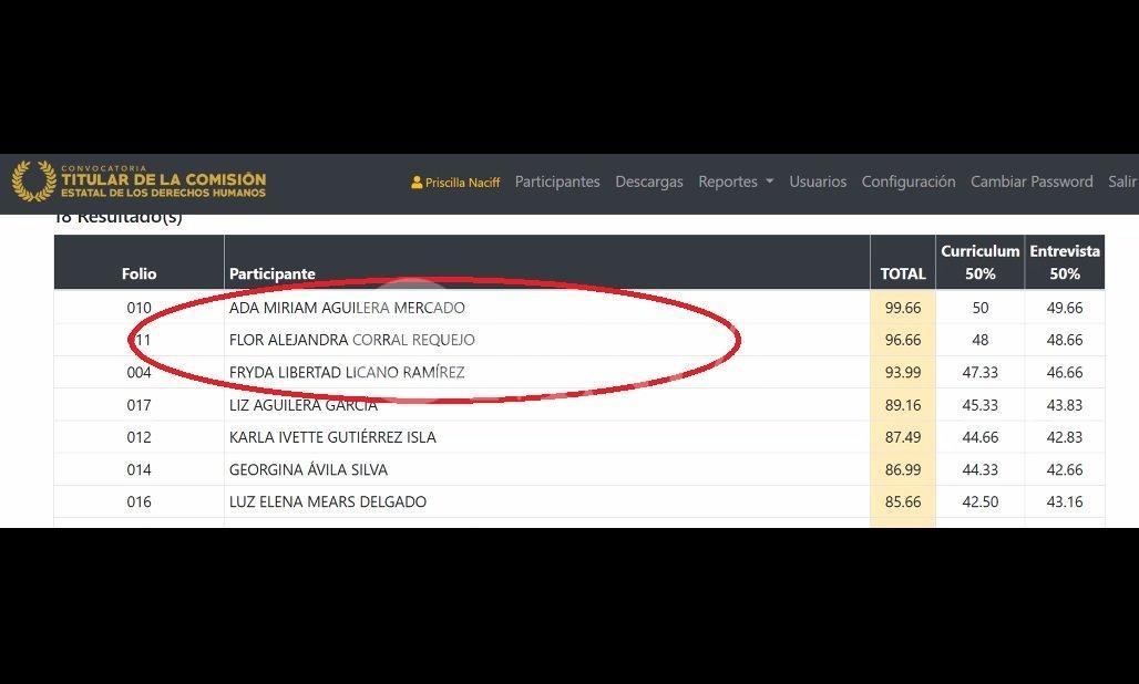 En esta reunión de la Jucopo se dieron a conoce las calificaciones descendentes, para definir a los tres primeros lugares a integrar la terna, la cual quedó conformada por: