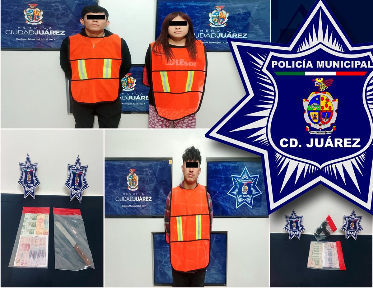 Tres personas fueron detenidas por elementos de la Secretaría de Seguridad Pública Municipal como probables responsables de cometer robos con violencia en tiendas de conveniencia, en hechos distintos registrados en la ciudad.