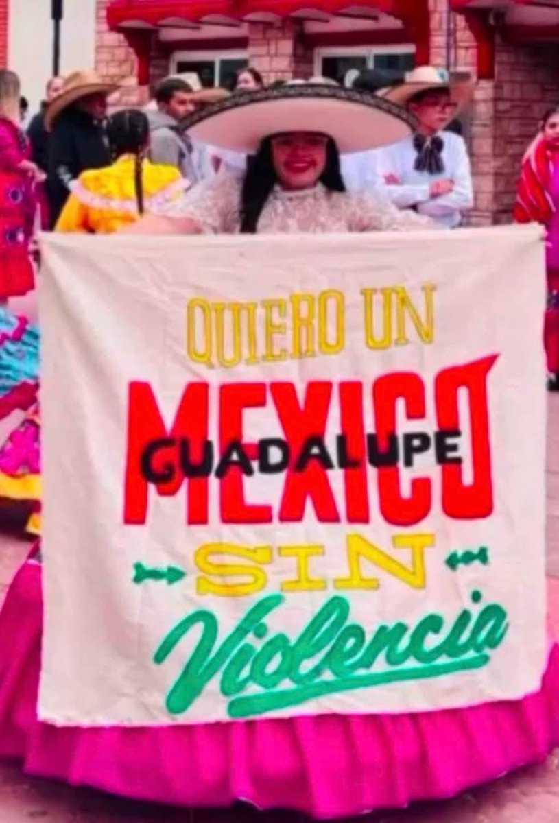 “Si o hay justicia para el pueblo, que no haya paz para el gobierno” fue la frase que adorna el vestido de una de las participantes, mientras que otra joven portó una lona que citó “Quiero un México sin violencia”, “quiero un Guadalupe sin violencia”.