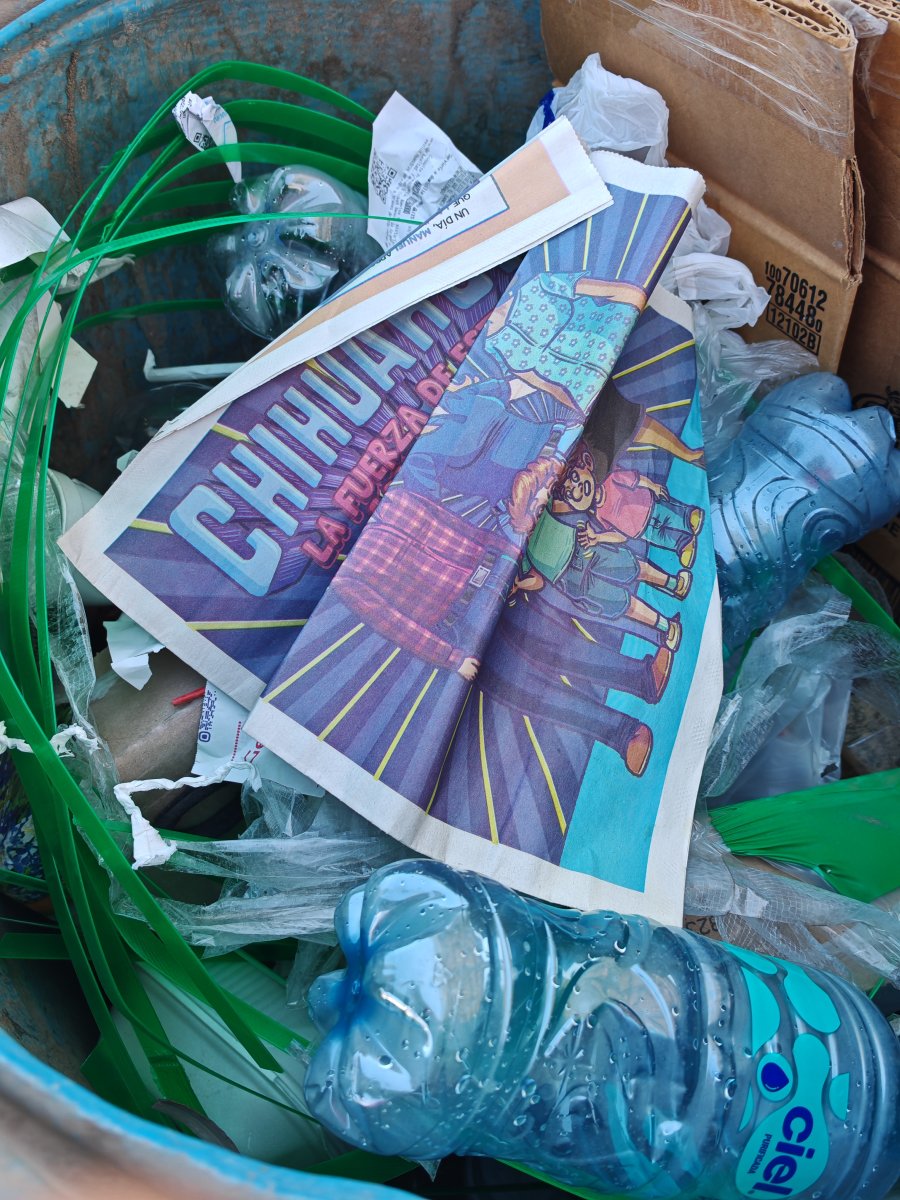 En el bote de basura fue donde termino un ejemplar del periódico con la imagen de Maru Campos, luego de que presunto personal del Gobierno del Estado los entregara en un crucero de la ciudad.