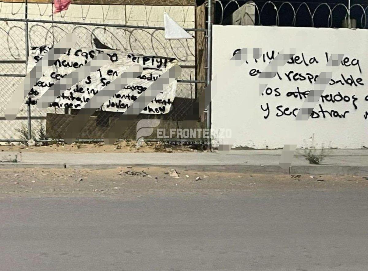 Los agentes de la Secretaría de Seguridad Pública Municipal retiraron la manta de la malla ciclónica y de la barda cubrieron el narcomensaje para después dar aviso a Fiscalía General del Estado (FGE).