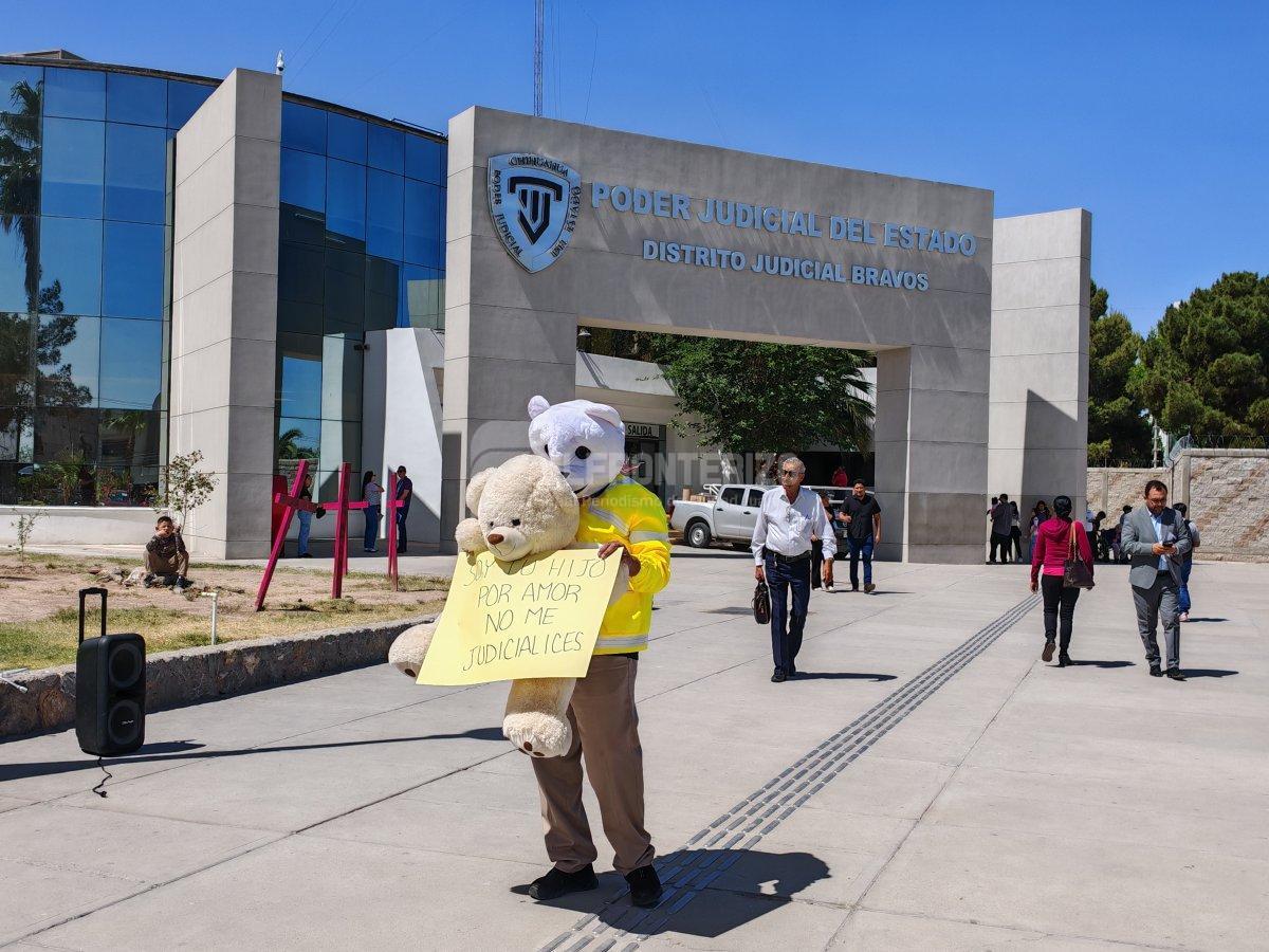 Con este contexto, integrantes de la organización se manifestaron este día en el Poder Judicial del Estado, en el Distrito Bravos, para visibilizar la problemática de la obstrucción parental.