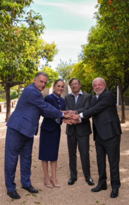 A través de sus redes sociales, la mandataria mexicana subió una fotorgafía con Gustavo Petro, presidente de Colombia; Luiz Inácio Lula da Silva, de Brasil, y Yamandú Orsi, de Uruguay.